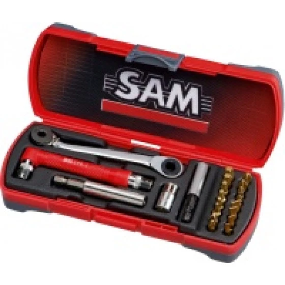 Normes : NF ISO 1173 – NF ISO 2380-1 – DIN 3126 – ISO 1173Utilisation pour maintenance gĂ©nĂ©rale.Coffret compact bimatiĂšre.DĂ©tail contenu :- 2 porte-embouts magnĂ©tique pour visseuse.- 1 douille porte-embouts 1/4.- 1 clĂ© coudĂ©e Ă cliquet porte-embouts magnĂ©tique 1/4 et 5/16.- 1 clĂ© porte-embouts 1/4.- 4 embouts fente : 4 – 5,5 – 6,5 – 8 mm- 3 embouts PhillipsÂź : N° 1 – 2 – 3- 3 embouts PozidrivÂź : N° 1 – 2 – 3- 6 embouts TorxÂź : 10 – 15 – 20 – 25 – 30 – 40