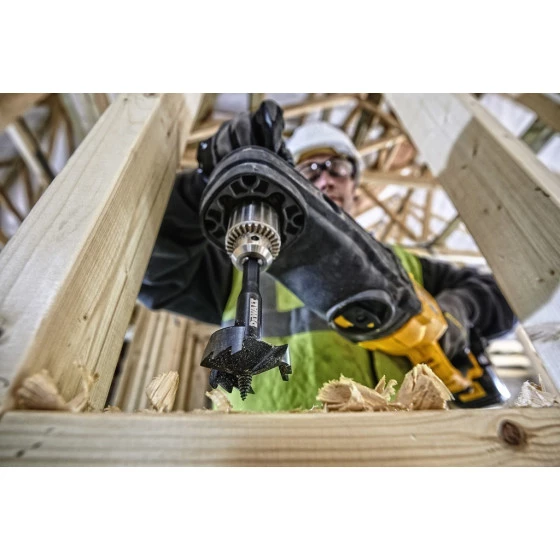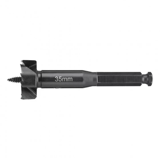 Pour un perçage rapide de trous nets et précis dans des bois durs et tendres ou des panneaux de bois et des plaques de plâtre, Emmanchement anti-glissement. Trois surfaces planes empêchent la rotation dans le mandrin et garantissent une transmission de puissance maximale, Pointe pilote filetée tirant ma mèche forstner dans le matériau